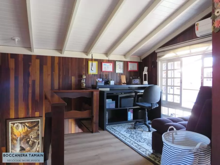 - Piso Superior: Ampla suíte com mezanino e Home Office